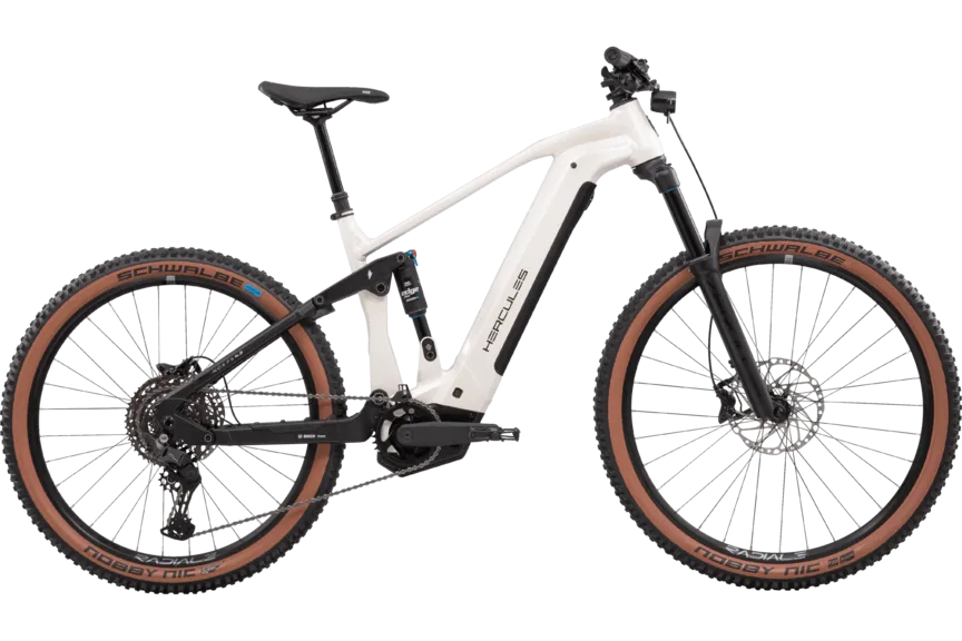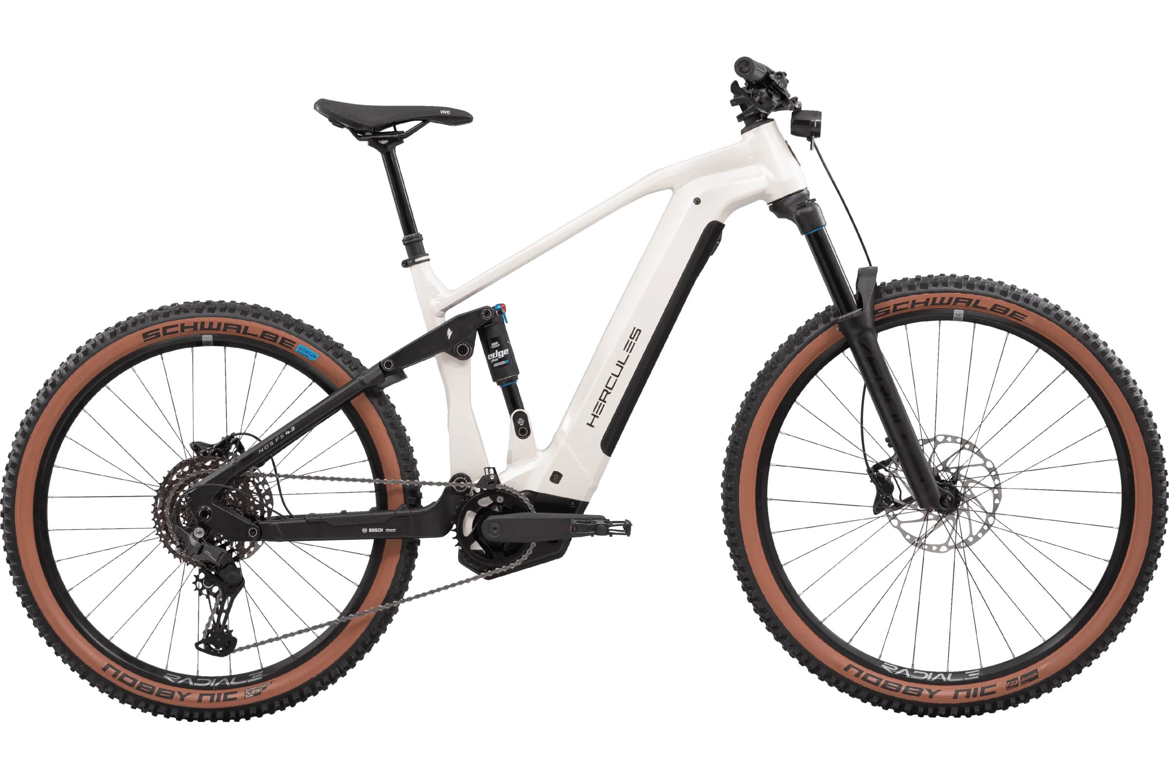 Voir tous les magasins qui vendent HerculesDécouvrez un concentré de puissance et un plaisir de conduite sans limites avec le NOS FS 4.3 ! Le moteur puissant Bosch Performance CX Smart System délivre un couple impressionnant de 85 Nm et assure une assistance dynamique et puissante sur tous les terrains. Combiné à la batterie PowerTube de 800 Wh, le NOS FS 4.3 offre une autonomie maximale, pour que vous ne soyez jamais à court d'énergie sur la route. Avec l'écran Bosch Purion 200 bien lisible, vous avez toutes les données importantes sous les yeux et pouvez contrôler votre expérience de conduite de manière intuitive. La transmission Shimano Cues à 10 vitesses vous garantit un changement de vitesse en douceur - précis et fiable, que ce soit en montée ou en plat.