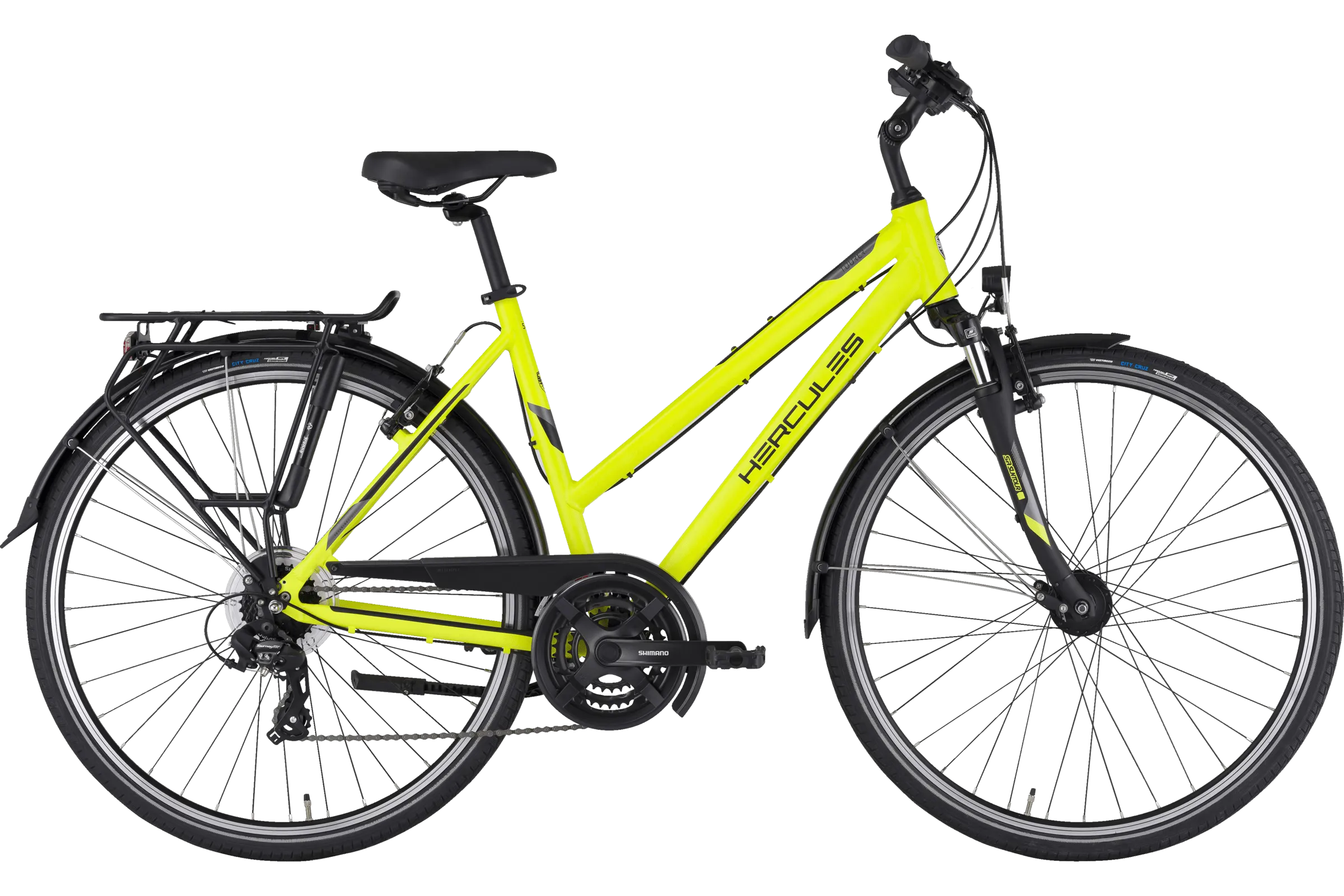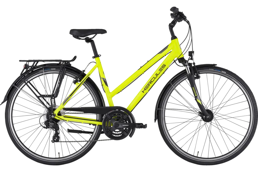 Voir tous les magasins qui vendent HerculesLe HERCULES Tourer 21 est un vélo pour toutes les occasions. En tant que vélo de trekking classique, il est à l'aise aussi bien sur les routes que dans le trafic urbain, ainsi que sur les circuits sportifs. Son équipement polyvalent, aussi sportif avec son dérailleur 21 vitesses et sa fourche suspendue que pratique au quotidien avec son éclairage LED, son porte-bagages et ses garde-boue, s'y prête parfaitement. Les freins mécaniques sur jante sont fiables et faciles à entretenir. Trois formes de cadre avec jusqu'à quatre tailles rendent le Tourer intéressant pour de nombreux cyclistes.