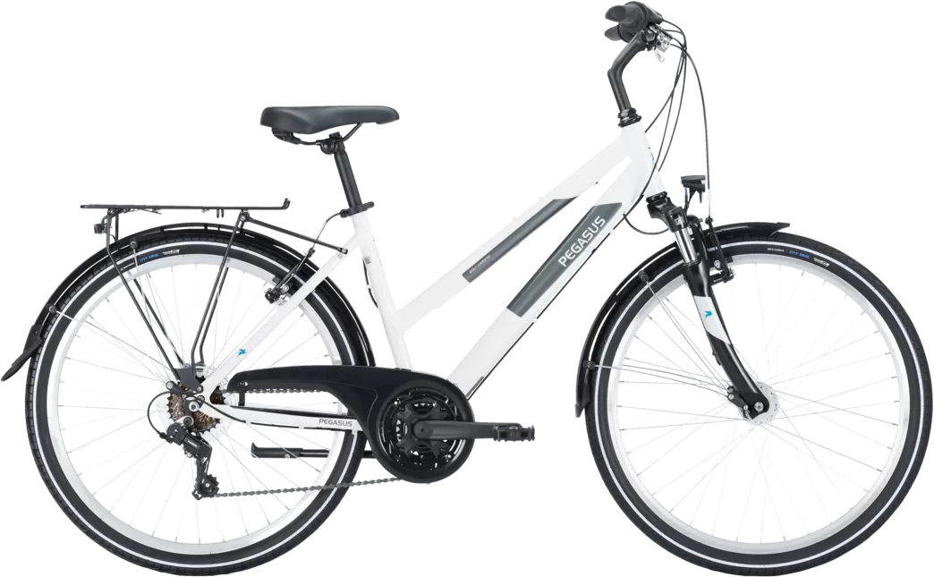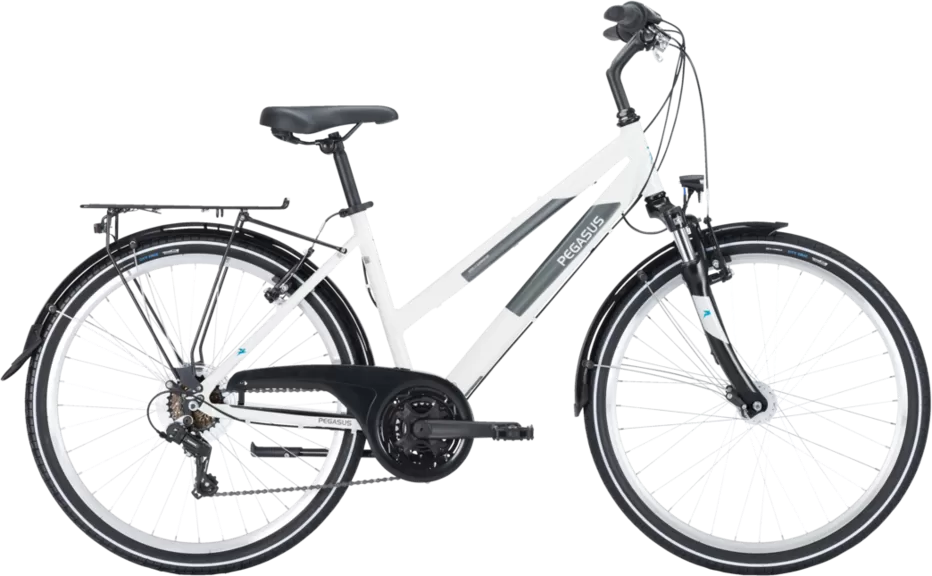 Voir tous les magasins qui vendent PegasusIdéal pour une utilisation quotidienne et prêt pour les excursions sportives, le vélo de ville et de randonnée offre un plaisir de conduite combiné à un super rapport qualité-prix. Les 18 vitesses offrent la gamme de vitesses nécessaire pour maîtriser les itinéraires les plus exigeants. Les pédales Urban avec grip assurent une adhérence optimale et la fourche suspendue offre un confort sportif au quotidien et lors des randonnées.