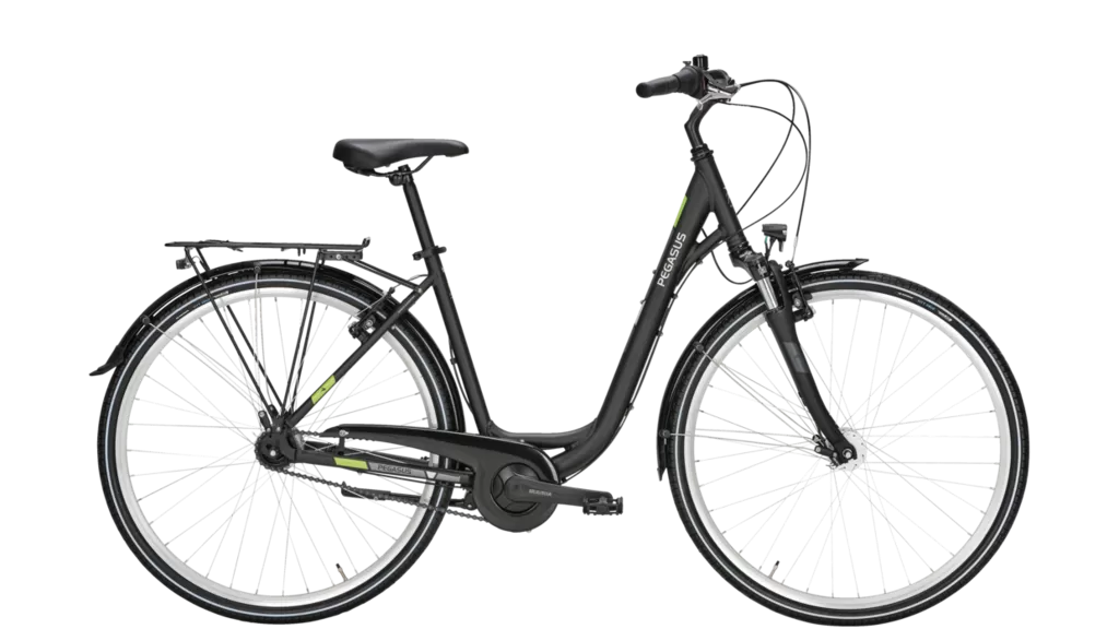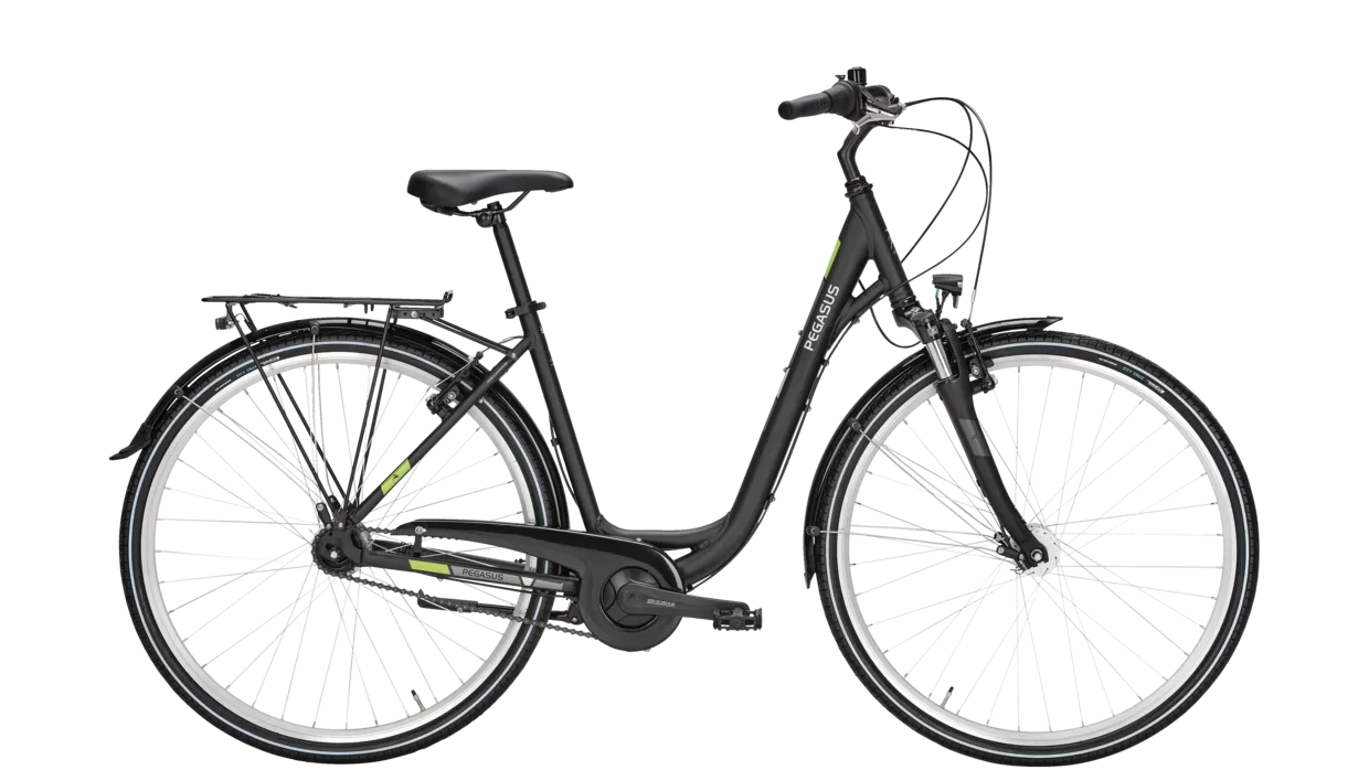 Voir tous les magasins qui vendent PegasusSept vitesses graduées de manière optimale offrent suffisamment de possibilités pour les sorties quotidiennes. En plus des freins en V fiables, le frein à rétropédalage offre une sécurité supplémentaire. Le PEGASUS classic est complété par un équipement routier de haute qualité comprenant un éclairage LED et une dynamo de moyeu.