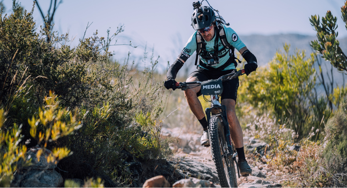 (Thomas Dietsch a beau avoir pris sa retraite sportive depuis quelques années, il est toujours bien présent en tête du Cape Epic. Comment ? Tout simplement au guidon de son ebike, il suit l’épreuve avec plusieurs caméras embarquées pour faire vivre l’épreuve aux milliers de téléspectateurs qui suivent les lives vidéo !) VojoMag.